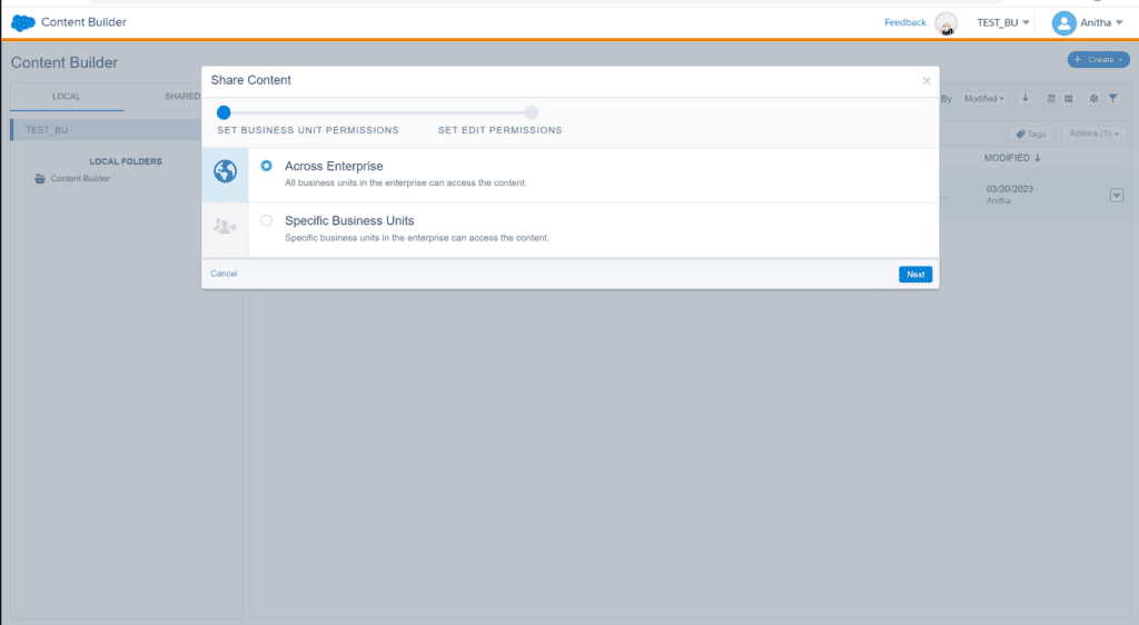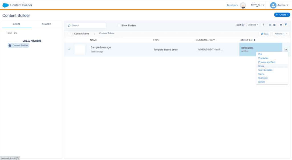 Sharing assets can help businesses save time and effort by creating them once and deploying them. Let’s see how Content Builder allows businesses to share content among BUs.