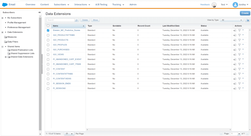 1. Select the data extension you want to share from your BU and click on Move.