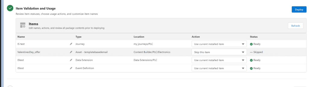 To deploy the packaged data in the desired business unit, navigate to the Deployment tab within the Package Manager.