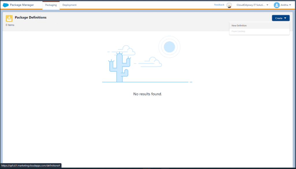 1. Goto Package Manager and Click on the Packaging tab as shown below and create a new definition.