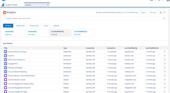 This App focuses on account-centric dashboards and lenses. It lets marketers find out how engaged and revenue-generating target accounts are and track the activities of account teams. Like the previous App, it also supports the creation of Einstein Discovery stories to enhance the pipeline.