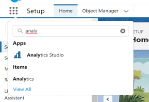 Once you complete the above steps, go to the App Switcher and search for Analytics Studio.