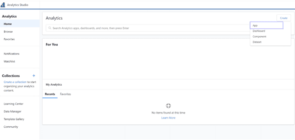 - Access Analytics Studio from the App Switcher in Salesforce