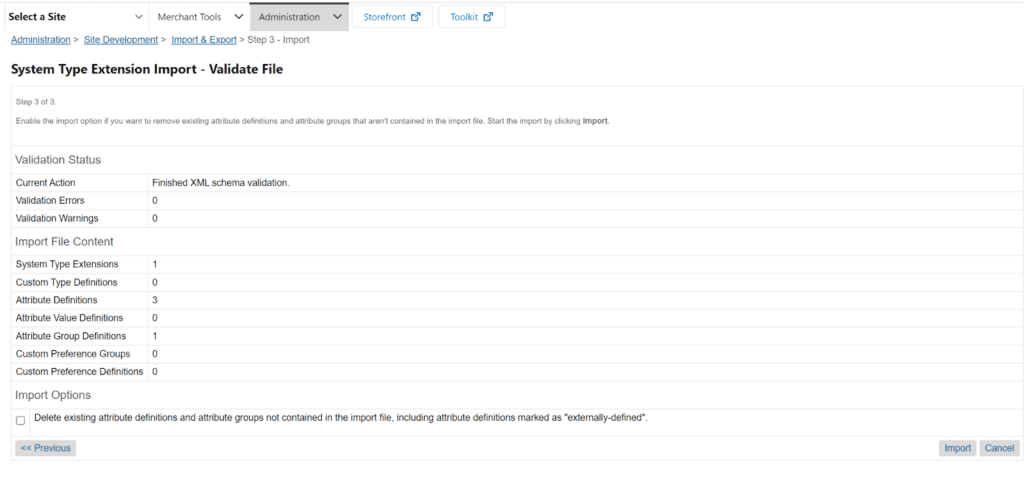 For that, we’ll have to go to Administration> Site Development > Import and Export > Upload > Choose File > Select your gtm_metadata.xml file from the metadata folder in your local storage. Select that folder once it appears in the BM and hit Import.