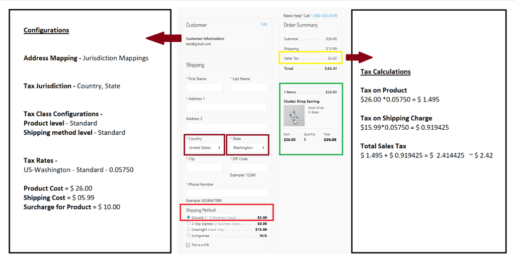 - On the checkout page, the selection of country, state, or postal code points to a jurisdiction created for shoppers’ selected shipping location.