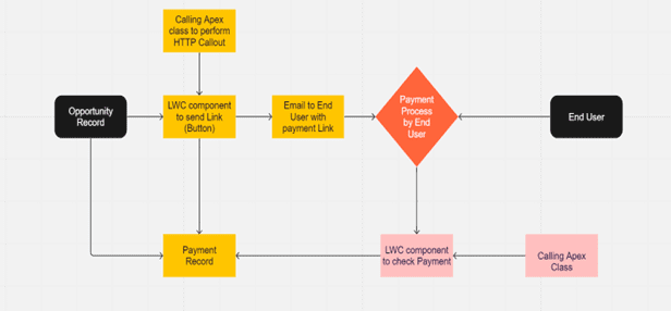 - Store this payment link on the opportunity record and send this link to the end client using email alerts and lightning flows.
