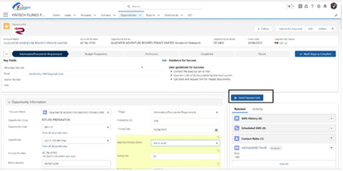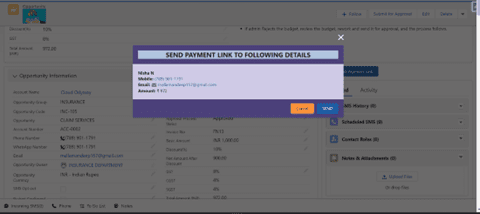 - Once the payment link is sent, create a payment-related record automatically to track the payment history.