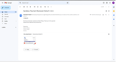 - Once the payment is made, ABC Company should be able to get information about the payment status inside the Salesforce Org, and the end user should automatically get an email with an INVOICE pdf attachment.
