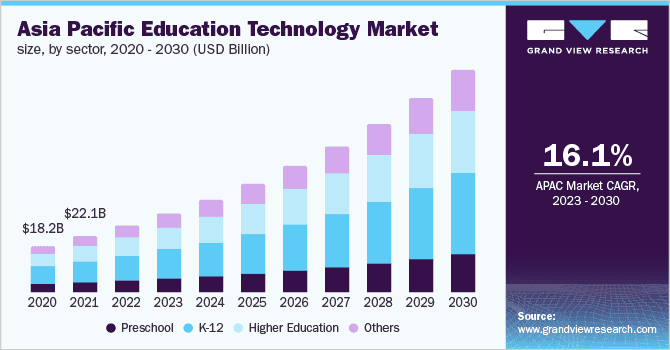 Did you know that Grand View Research expects the worldwide EdTech market to reach $404 billion by 2025, with a 17.9% CAGR? The global education technology (EdTech) market will be $348.41 billion by 2030. Between 2023 and 2030, expansion is predicted at a compound annual growth rate (CAGR) of 13.6%. Over 2,000 educational institutions are using Salesforce Education Cloud. Some colleges, such as Harvard, Stanford, and the University of California, Berkeley, are well-known. According to Global Data, India’s EdTech industry is one of the fastest-expanding in the world. The market was valued at $3.42 billion in 2021 and is predicted to be worth $10.4 billion by 2025, representing a greater than 30% CAGR.