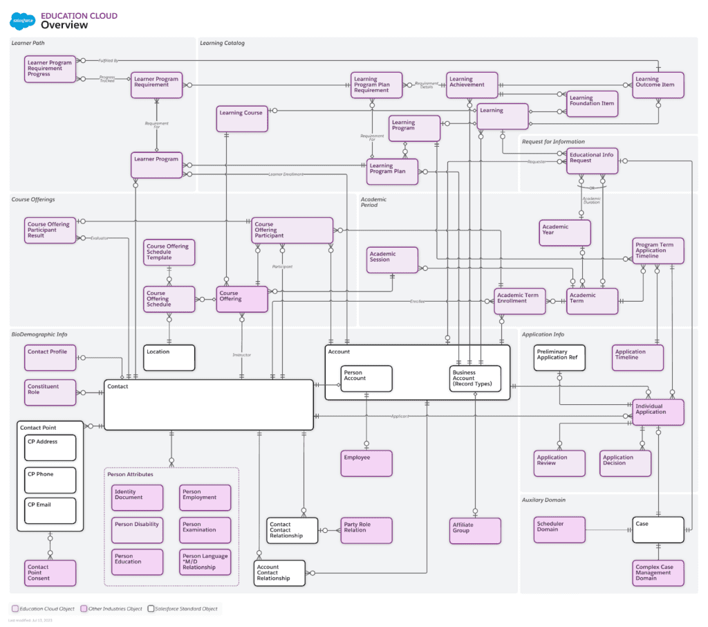 The Salesforce Education Cloud ERD is an invaluable tool for understanding the data model within the Education Cloud platform. It facilitates application development and problem-solving and provides a comprehensive view of the data stored in the Education Cloud.