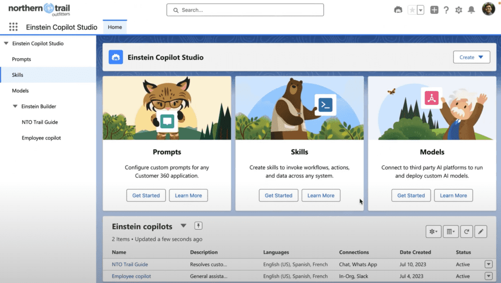 One of Einstein Copilot’s standout features is its accompanying tool, Einstein Copilot Studio. This intuitive platform encompasses several components that enhance the user experience: