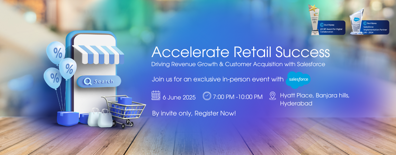 Cloud Odyssey and Salesforce are excited to extend an exclusive invitation to join us for an In-person event where we delve into strategies that empower retailers to drive revenue growth & customer acquisition.